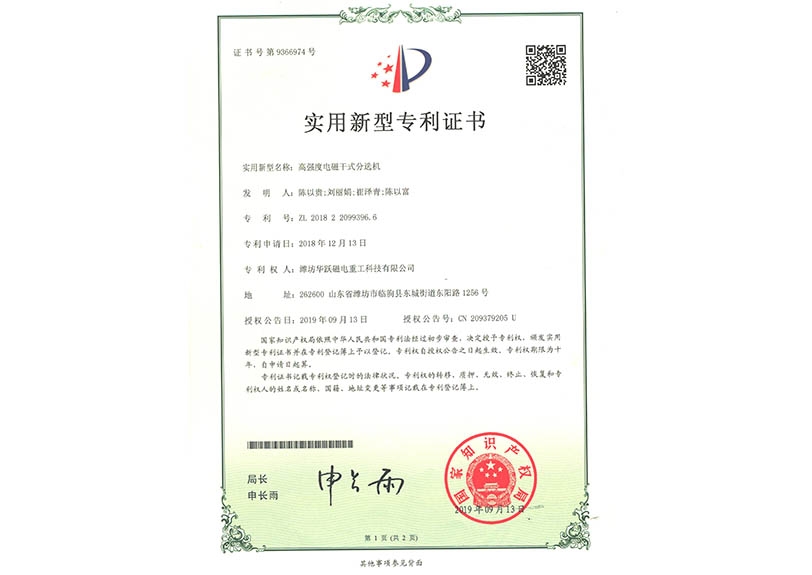 粉尘防爆电磁除铁器证书
